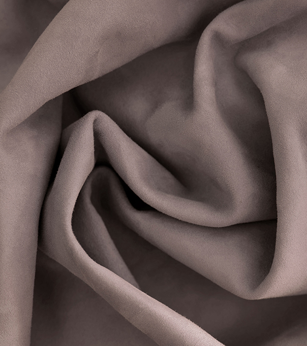 Pelle di capra scamosciata conciata al cromo proveniente dalla Spagna.